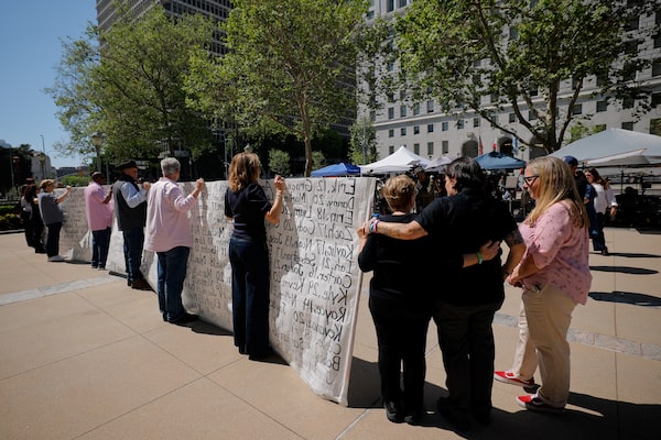 Parents who say they have lost their children because of social media hold up a banner with the children's names outside the court in Los Angeles, Calif., after a jury found Meta and Google liable in a test case.Mike Blake/Reuters