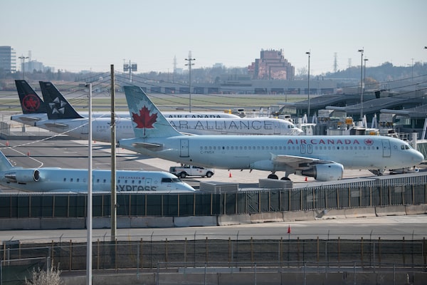 Air Canada aircraft are parked by Terminal 1 at Toronto Pearson International Airport on Nov, 9, 2020.Fred Lum/The Globe and Mail