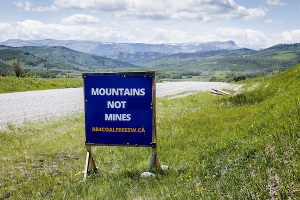 A sign opposing coal development in the eastern slopes of the Livingston range south west of Longview, Alta., on June 16, 2021.Jeff McIntosh/The Canadian Press
