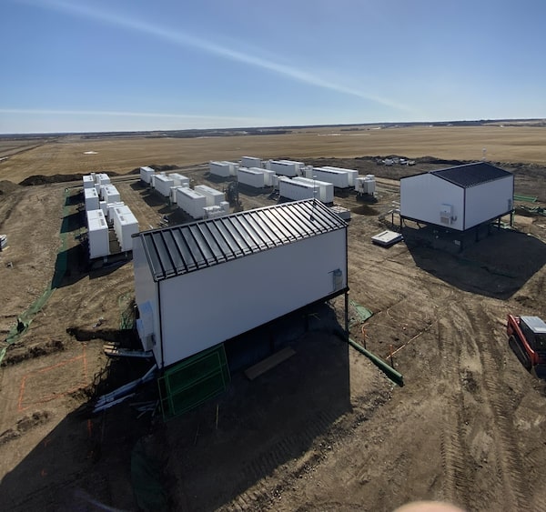 Enfinite’s collocated eReserve4 and eReserve6 battery energy storage systems (BESS) situated southeast of the Town of Hardisty, Alta.Enfinite/Handout