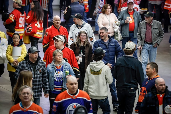 Crowds walk through the concourse before the start of a Calgary Flames game in Calgary on April 6.Jeff McIntosh/The Canadian Press