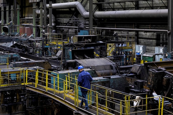 A worker walks along a walkway at Algoma Steel in Sault Ste. Marie, Ont.Carlos Osorio/Reuters