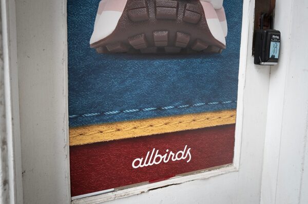 A poster hangs on the door of a shuttered Allbirds store in Chicago, Ill. Allbirds sold its brand and footwear assets to American Exchange Group for US$39-million last month.Scott Olson/Getty Images