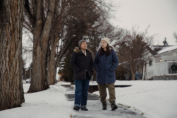 Sultan Aitekenov and his wife, Makhabbat Aitekenova, who came to Canada from Kazakhstan as part of the Federal Skilled Worker Program, walk near their home in Edmonton, Alberta on Dec. 7. Despite skills in data analytics and a diligent job search, Mr. Aitekenov has not been able to find employment in more than a year of searching.Amber Bracken/The Globe and Mail