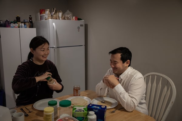 Sultan Aitekenov and his wife, Makhabbat Aitekenova, enjoy a breakfast conversation at their home in Edmonton on Dec. 7.Amber Bracken/The Globe and Mail