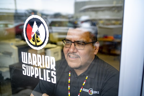 Jason Thompson, a member of the Red Rock Indian Band, in his office on April 7. Thompson owns Superior Strategies Supply and Service, a Thunder Bay company that recently started manufacturing disposable isolation gowns for health care workers.David Jackson/The Globe and Mail