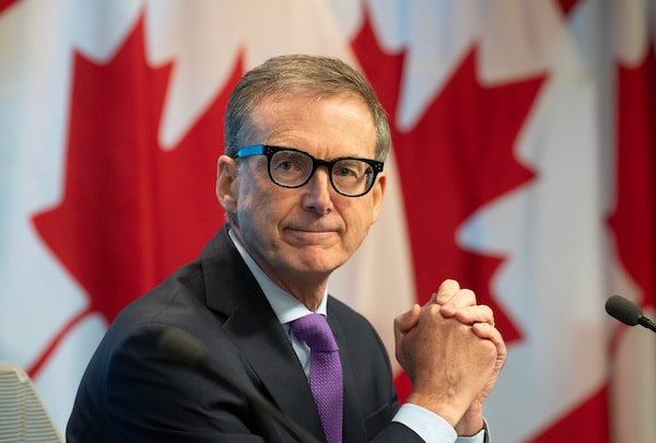 Bank of Canada Governor Tiff Macklem listens during a news conference following an interest rate announcement on Oct. 25, 2023, in Ottawa.Adrian Wyld/The Canadian Press