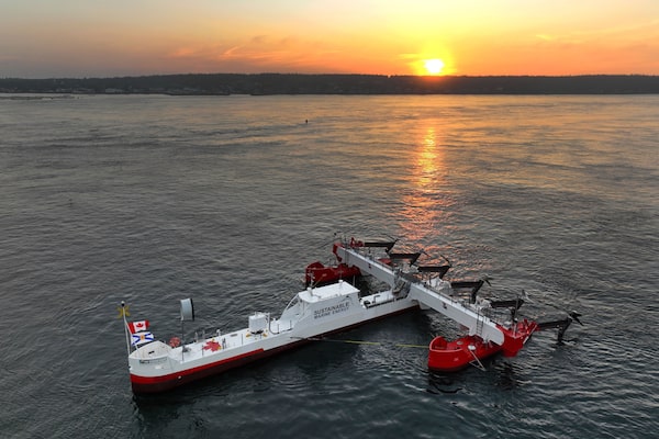The tidal currents in Grand Passage, between the Bay of Fundy and St. Marys Bay, flow at up to three metres a second. It was in this narrow channel, between Nova Scotia’s Brier Island and Long Island, that Britain-based startup company Sustainable Marine deployed PLAT-I, a floating platform with turbines meant to harness the tides – much in the same way wind turbines use wind.