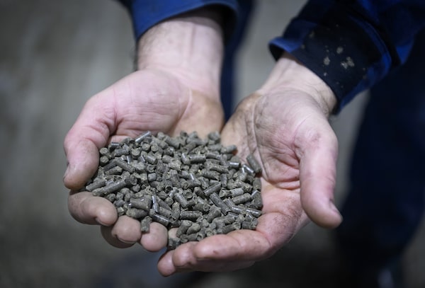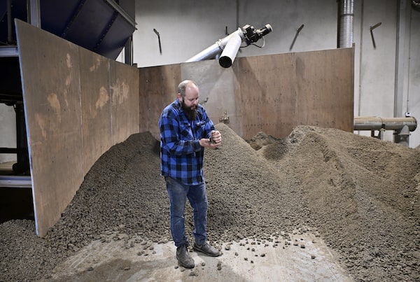 Mr. Dick holds digestate fertilizer pellets. Biogas plants are a key tool to reduce Canada’s greenhouse gas emissions.Jennifer Gauthier/The Globe and Mail