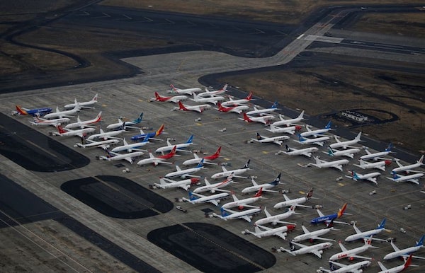 Grounded Boeing 737 Max aircraft sit parked at Grant County International Airport in Moses Lake, Wash., on Nov. 17, 2020.LINDSEY WASSON/Reuters