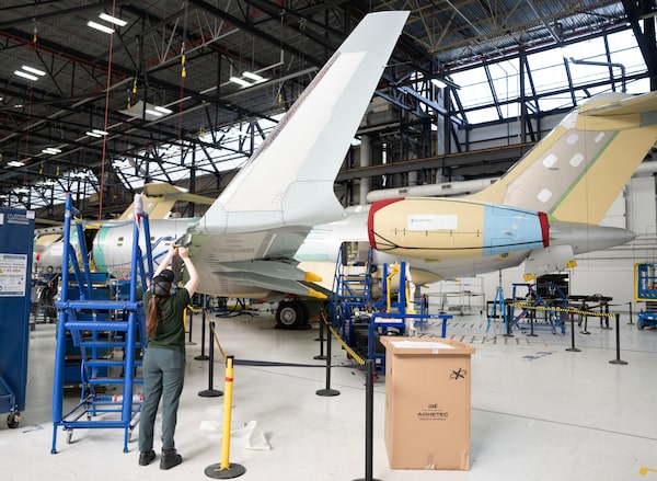 A Bombardier employee works on an aircraft in Dorval, Que. on April 14.Christinne Muschi/The Canadian Press