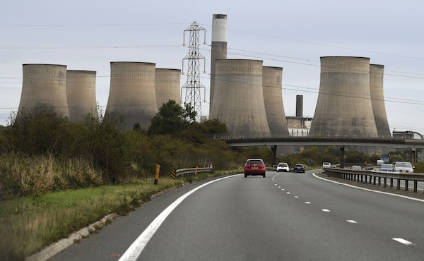 Vehicles drive past the Ratcliffe-on-Soar power station in Nottingham, England, on Sept. 29. The closing of Britain's last coal-fired power plant marks the end of coal-generated electricity in the nation that sparked the Industrial Revolution.Rui Vieira/The Associated Press
