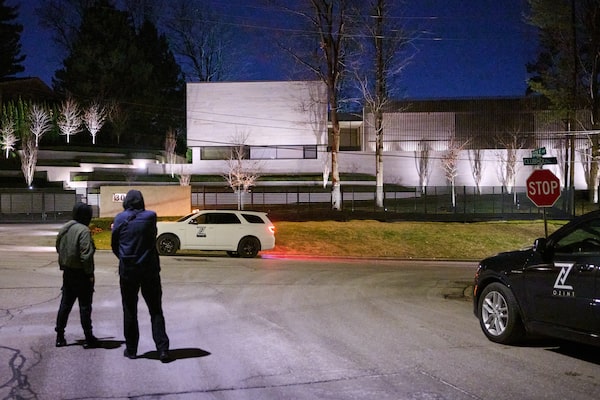 Private security guards patrol outside the home of GIP executive Paul Borrelli in Woodbridge, Ont., where a gunman opened fire on March 25.Sammy Kogan/The Globe and Mail
