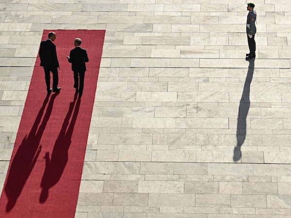 German Chancellor Friedrich Merz, receives Canadian Prime Minister Mark Carney in Berlin, Aug. 26.Soeren Stache/The Associated Press