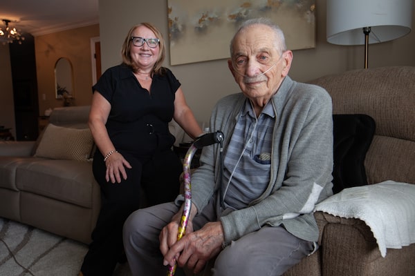 Fred Soda, 92, and his daughter, Cathy Soda, 64, sit at the living room table in LaSalle, Ont., on Sept. 17, 2025.Dax Melmer/The Globe and Mail
