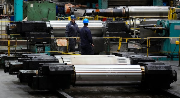 Machinery and workers are seen at Algoma Steel Inc., in Sault Ste. Marie, Ont., on April 25.Sean Kilpatrick/The Canadian Press