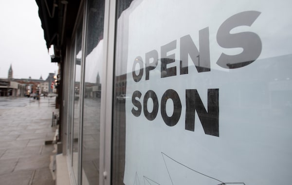 A sign announces a store will open soon in Ottawa on April 30, 2020 in Ottawa.Adrian Wyld/The Canadian Press
