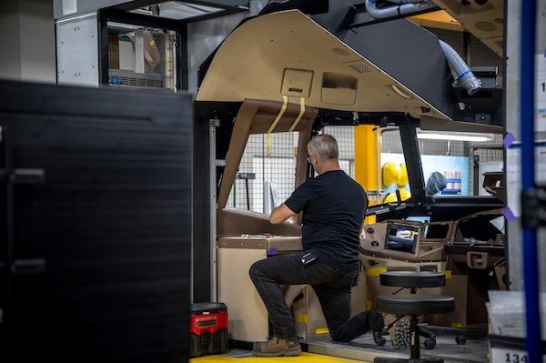 A CAE employee works on the cockpit that will go in a CAE simulator in the CAE manufacturing plant in Montreal.Andrej Ivanov/The Globe and Mail