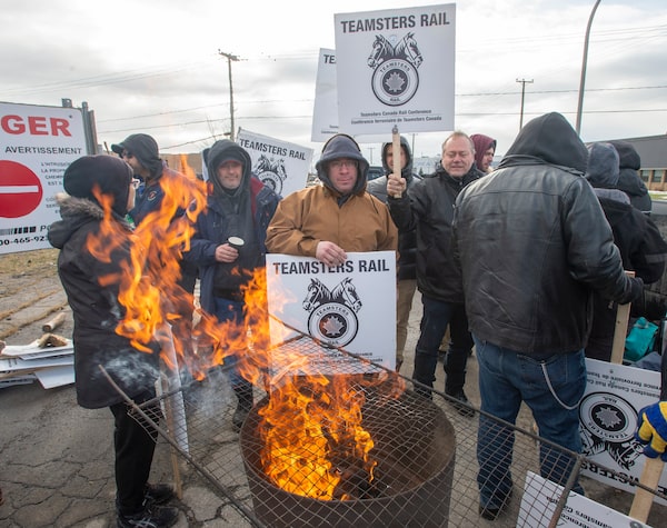 Striking Canadian National Railway workers picket in front of the company's Taschereau railyard Friday, November 22, 2019 in Montreal.Ryan Remiorz/The Canadian Press