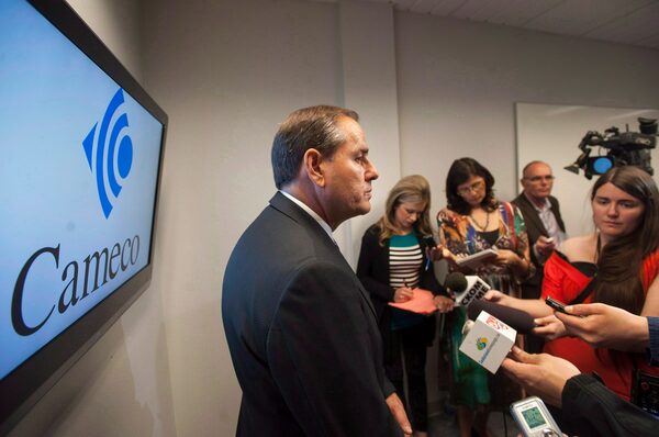 Cameco President and Chief Executive Officer Tim Gitzel speaks with media following the company's annual general meeting in Saskatoon on May 28, 2014.Liam Richards/The Canadian Press