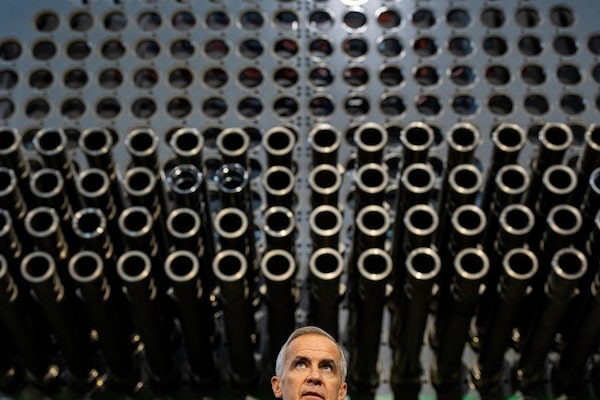 Prime Minister Mark Carney and Ontario Premier Doug Ford (not pictured) hold a joint press conference in front of a mock nuclear reactor at the Darlington Energy Complex in Courtice, Ont., on Oct. 23, 2025.Carlos Osorio/Reuters