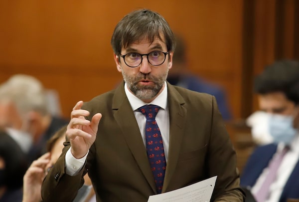 Environment and Climate Change Minister Steven Guilbeault rises during Question Period in the House of Commons on Parliament Hill on June 7, 2022. Last week at a climate conference in Toronto, Guilbeault rolled out a measure to restrict federal contracts over $25-million to companies that disclose their greenhouse-gas emissions and set reduction targets.PATRICK DOYLE/The Canadian Press