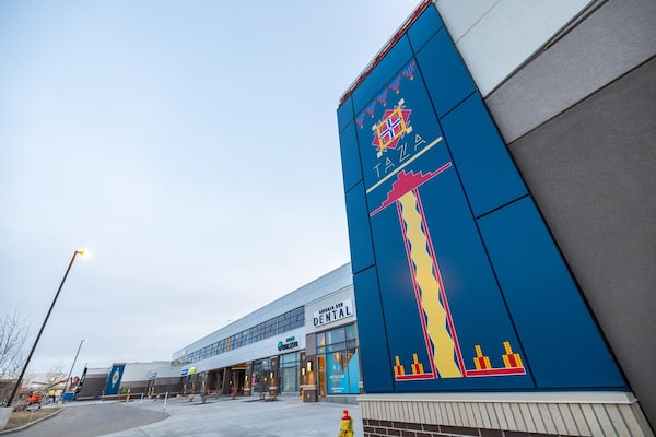 At the Shops at Buffalo Run, shoppers can also see numerous elements that promote the culture of the Tsuut’ina people, “from as small as the manhole-cover designs” to huge murals and art installations, says Mr. Starlight. “When you walk into Costco, the first thing you see is giant ‘welcome’ sign, written in Sarcee, the Tsuut’ina language. That’s a pretty big step,” he says.