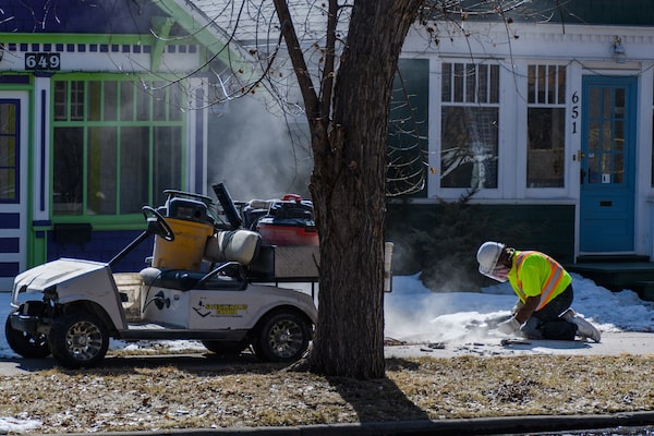 A construction worker works on a sidewalk in the Sunnyside area in Calgary on April 4.Jude Brocke/The Globe and Mail
