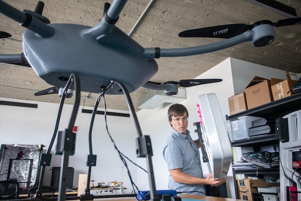 David Roy-Guay, CEO and co-founder of SBQuantum, prepares a drone which will be deployed to conduct advanced magnetic surveys for the mining industry.ALEXIS AUBIN/The Globe and Mail