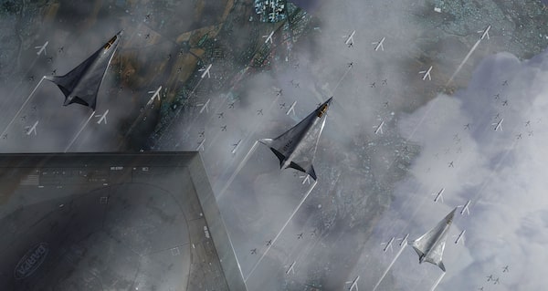 An artist's concept of manned and unmanned combat aerial vehicles operating together using technology from DARPA’s Artificial Intelligence Reinforcements program. In April, DARPA announced that three Canadian companies qualified for the Quantum Benchmarking Initiative.Colie Wertz/DARPA
