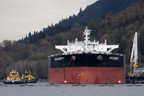 The Aqualiberty, a Monrovia-flagged tanker ship, docks at the Westridge Marine Terminal, the terminus of the TMX pipeline in Burnaby, B.C.Jesse Winter/The Globe and Mail