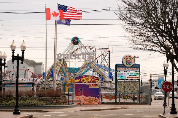American and Canadian flags fly near the Palace Playland amusement park in Old Orchard Beach, Maine, in April. Many travellers who cross into the U.S. have concerns about safety or disruptions.Robert F. Bukaty/The Associated Press