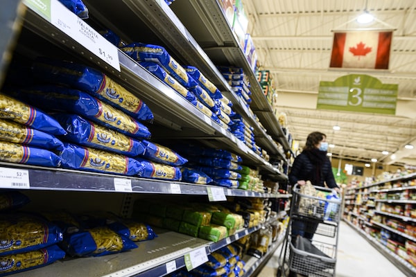 Employees restock shelves at Fiesta Farms independent grocery in Toronto on Jan. 20.Christopher Katsarov/The Globe and Mail