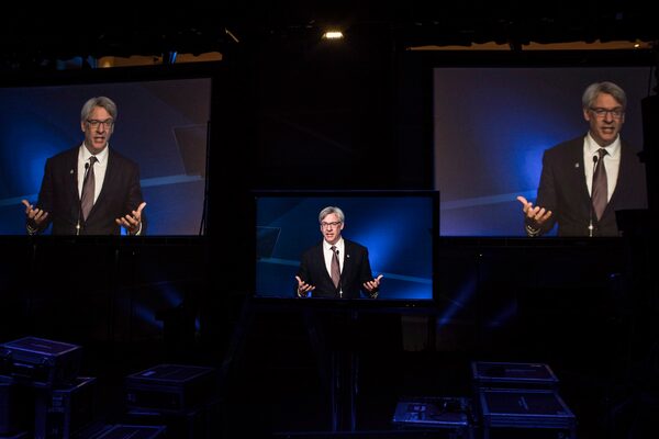 In-person annual meetings, like this one featuring RBC president and CEO David McKay in 2018, are not expected to happen in the early months of 2021 because of the pandemic.Chris Young/The Canadian Press