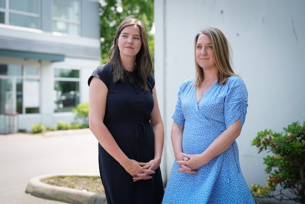 End-of-life doulas Emily Bootle, left, and Megan Sheldon stand outside KORU Cremation, Burial, Ceremony in Vancouver.DARRYL DYCK/The Globe and Mail