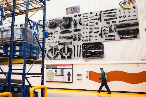 A worker crosses the Magna plant in Puebla, Mexico, in 2015. The Mexican Association of Automotive Distributors said in September the country’s Chinese car imports had increased by 62.6 per cent during the first eight months of 2023.Brett Gundlock/ Boreal Collectiv/The Globe and Mail