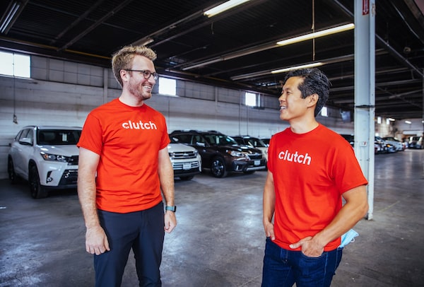Clutch founder and COO Steve Seibel, left, and CEO Dan Park. The Toronto-based online used car retailer relies on generative AI to churn out initial versions of ad images and copy, but still uses real photoshoots.JENNIFER ROBERTS/The Globe and Mail