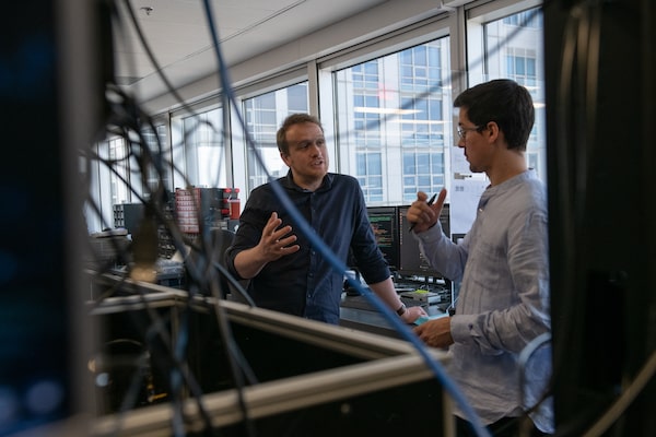 Quantum physicists Fabian Laudenbach, left, and Jonathan Lavoie at work at Toronto-based tech company Xanadu Quantum Technologies Inc.Galit Rodan/The Globe and Mail