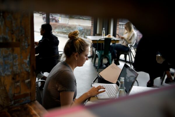 Kathryn Boeker works at a coffee shop as the state of Texas lifts its mask mandate and allows businesses to reopen at full capacity in Houston on March 10, 2021.CALLAGHAN O'HARE/Reuters