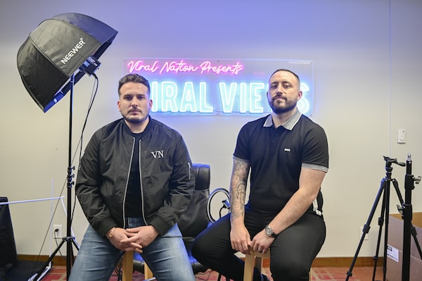 Co-CEOs of Viral Nation Joe Gagliese, left, and Mathew Micheli at their offices in Mississauga, Ont., on April 8.Christopher Katsarov/The Globe and Mail