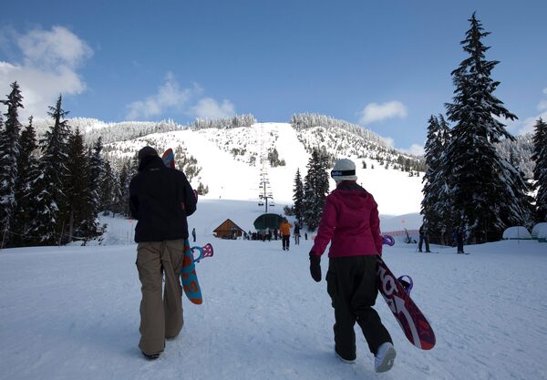 Snowboarders make their way to the chairlift at Cypress Mountain in West Vancouver.Jonathan Hayward/The Canadian Press