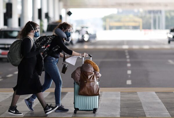 Women wear protective face masks at the Guarulhos International Airport in BraziI on March 18, 2020.ROOSEVELT CASSIO/Reuters