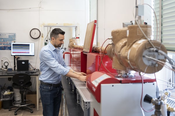 For Michael Metzger, a typical day at the office starts by checking the mass spectrometer. The machine has been busy most nights testing batteries created by graduate students in his lab at Dalhousie University in Halifax.
