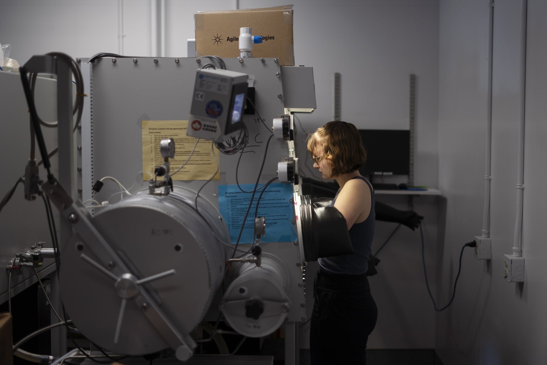 Dr. Metzger works with the mass spectrometer, which measures what gases the battery may be releasing as it discharges and then is recharged, over and over again.Darren Calabrese/The Globe and Mail