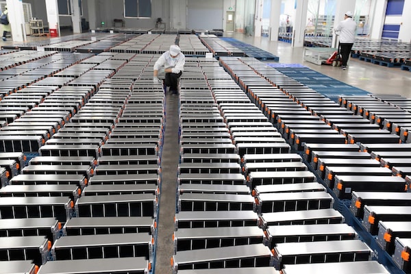 Xinwangda Electric Vehicle Battery Co. Ltd makes lithium batteries for electric cars and other uses, in Nanjing, China. China is among the world’s biggest miners of lithium, with control of about two-thirds of the refining process globally.STR/AFP/Getty Images
