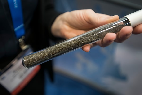 Sand containing titanium is shown at the Professional Developers Association of Canada convention and trade show in March 2020. The titanium is found on beaches and don't require heavy mining to recover it.Fred Lum/The Globe and Mail