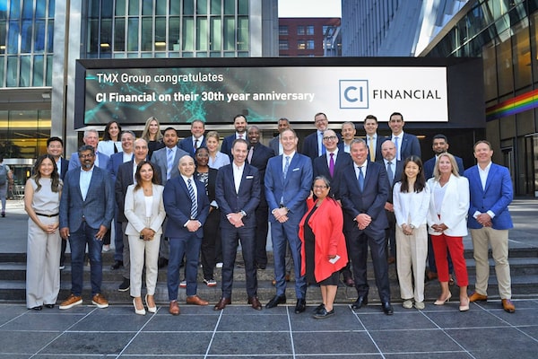 Employees at CI Financial open the market to celebrate the 30th anniversary of its listing on the Toronto Stock Exchange on June 24.Supplied