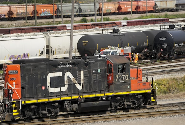 CN rail trains at the CN MacMillan Yard in Vaughan, Ont., on June 20, 2022.Nathan Denette/The Canadian Press