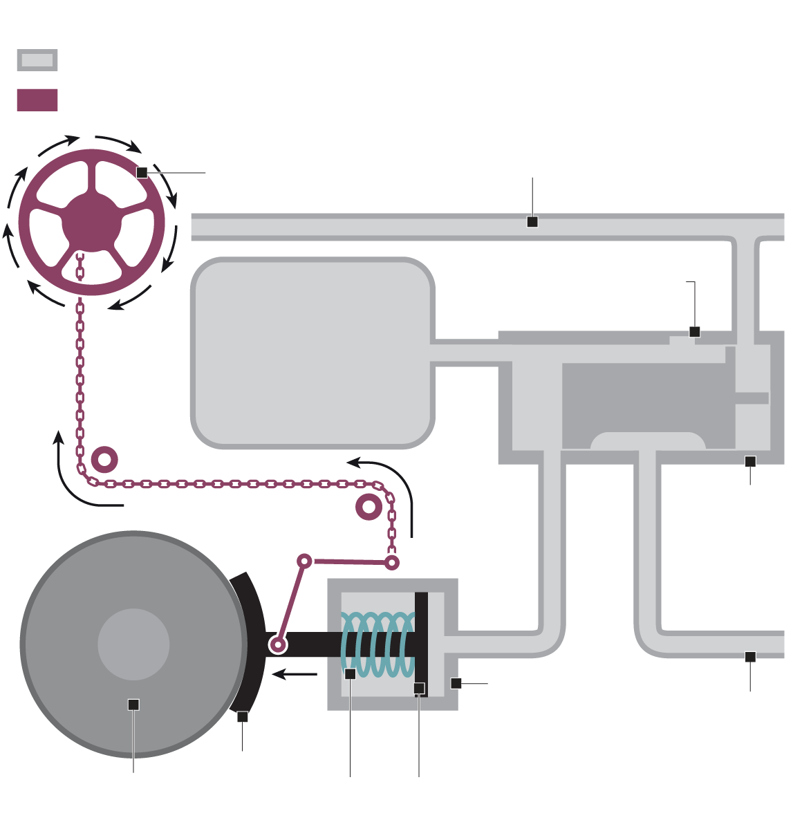 Handbrakes, used when cars are stopped, require a crew member to manually turn a hand wheel on each car to apply and set the pads against the wheels. This is a physically demanding task, especially when done on dozens of cars in cold weather. Trains used to employ brakemen for the task, now added to the responsibilities of a conductor.
