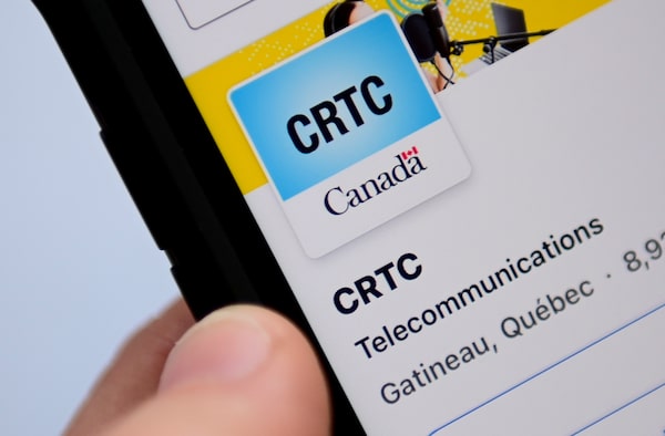 A person navigates to the online social media pages of the Canadian Radio-television and Telecommunications Commission (CRTC) on a cell phone in Ottawa on May 17, 2021.Sean Kilpatrick/The Canadian Press